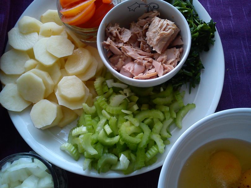 Potatoes, leek and tuna frittata